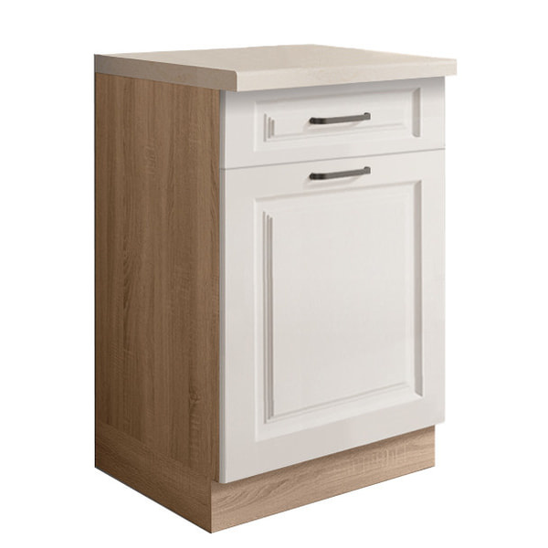 Praktická jednodvéřová dolní skříňka se zásuvkou je vyrobena z laminované dřevotřísky v barevném provedení korpus dub sonoma , dvířka bílá lesk. Díky polici uvnitř skříně získáte praktický úložný prostor. Skříně s tichým dovíráním v zásuvkách a dvířkách. Výhodou systému Favorit je možnost libovolného sestavení skříněk a díky tomu můžete tvořit vybrané kompozice a přizpůsobit je vlastním interiérům. Dolní skříňky jsou bez pracovní desky a soklu. Zboží dodáváme v demontu.