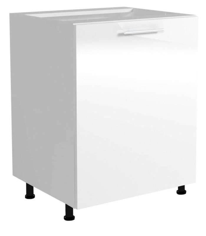 Dolní skříňka je součástí moderní kuchyňské linky VENTO. Tato skříňka je s dvířky. Korpus je z lamina v barvě bílá, dvířka jsou z materiálu MDF v barvě bílý lesk. Dolní skříňka má regulované nožky. Výška skříněk je bez pracovní desky. Úchytka je v barvě chrom o délce 12,8 cm. Zboží je dodáváno v demontu.