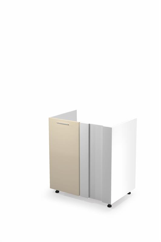 Dolní skříňka rohová je součástí moderní kuchyňské linky VENTO. Tato skříňka je s dvířky a je určena na dřez. Korpus je z lamina v barvě bílá, dvířka jsou z materiálu MDF v barvě béžový lesk. Dolní skříňka má regulované nožky. Výška skříněk je bez pracovní desky. Úchytka je v barvě chrom o délce 12,8 cm. Zboží je dodáváno v demontu.