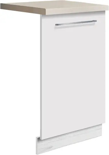 Dvířka pro vestavnou myčku 45 cm ze sestavy CREATIVA je vyrobena z laminované dřevotřísky v barevném provedení bílý lesk, šedý lesk, dub stone. Dolní skříňky jsou bez pracovní desky a soklu.