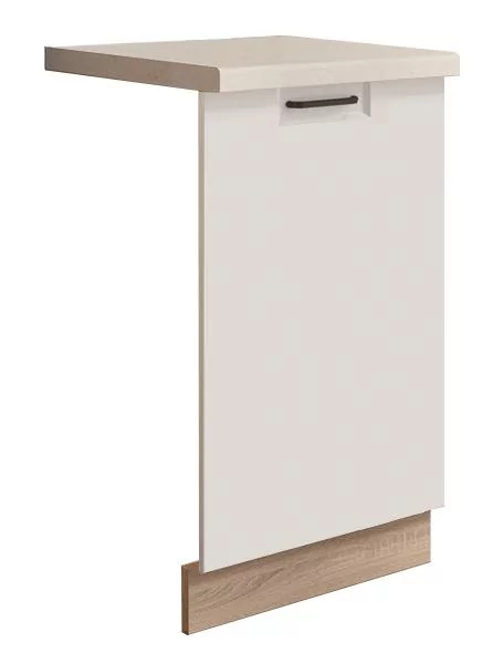 Přední část pro myčku ze sestavy FAVORIT je vyrobena z laminované dřevotřísky v barevném provedení dub sonoma/bílá lesk. Dolní skříňky jsou bez pracovní desky a soklu.
