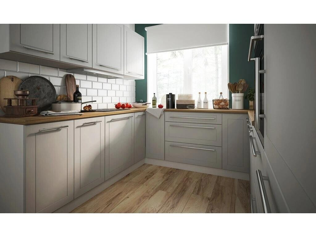Kuchyně QUANTUM nadčasového designu se hodí do klasických i moderních interiérů. Dvířka pro standardní vestavné myčky se šířkou 45 cm s odkrytým ovládacím panelem. Dvířka z materiálu MDF jsou oblepena PVC fólií s matnou, vysoce kvalitní strukturou v tl.16mm. Úchytky na dvířkách RELLING. Jemný profil frézování dvířek dodává kuchyni velmi elegantní nádech. Dolní skříňky kuchyně QUANTUM jsou dodávány bez pracovní desky, včetně soklu a bez spotřebičů. Zboží dodáváme v demontu.