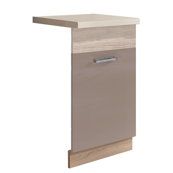 Přední část pro myčku ze sestavy PREMIO je vyrobena z laminované dřevotřísky v barevném provedení dub sonoma/cappuccino lesk. Dolní skříňky jsou bez pracovní desky a soklu.