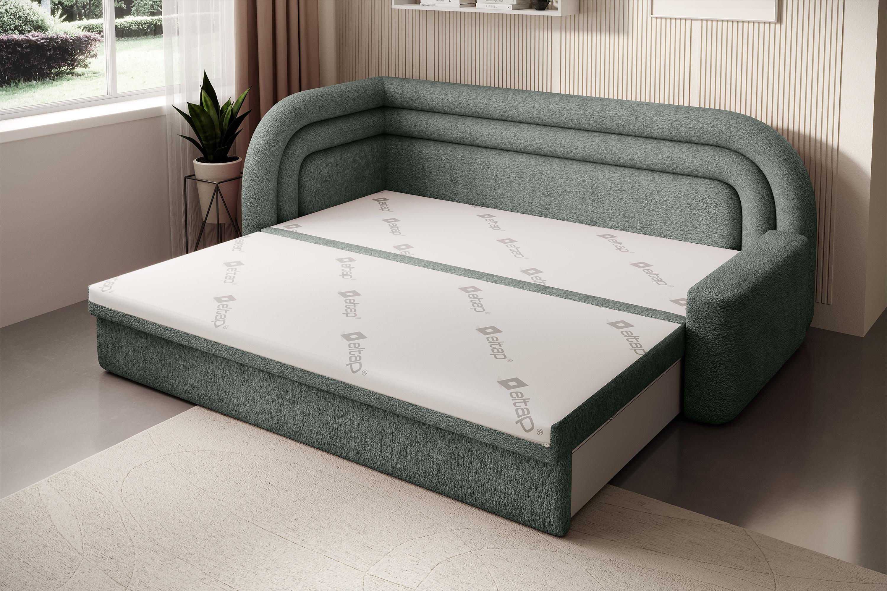 The Fabillo sofa is an elegant and functional piece of furniture that perfectly fits into modern, minimalist, and Japandi interiors. With the option of choosing a left or right version, Fabillo easily adapts to various room layouts. Made from high-quality fabrics, it is durable and comfortable, providing seating for up to three people. A wide range of available fabrics allows for a personalized appearance to match individual preferences. Additionally, Fabillo features a sleeping function, making it an ideal solution for guests or as an extra bed in the living room. The unfolding mechanism is simple and intuitive, and the sleeping surface is flat and comfortable, ensuring a restful sleep. The Fabillo sofa stands out with its trendy rounded edges, giving it an elegant and modern look. The soft lines and curved shapes make it not only functional but also extremely aesthetic. Fabillo is suitable for various home spaces, such as the guest room, teenager's room, or living room, making it a versatile solution for many uses.