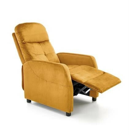 Relaxační křeslo Felipe 2 je potažené příjemnou látkou s prošíváním v barevném provedení hořčicová. Polohování ovládáte vlastní silou. Zapřete se do opěráku zad – ten se sklopí a zároveň vysune opěrný prvek pro nohy. Pro složení se naopak zapřete do opěrky nohou. Maximální nosnost 120 kg. Zboží dodáváme v demontu.