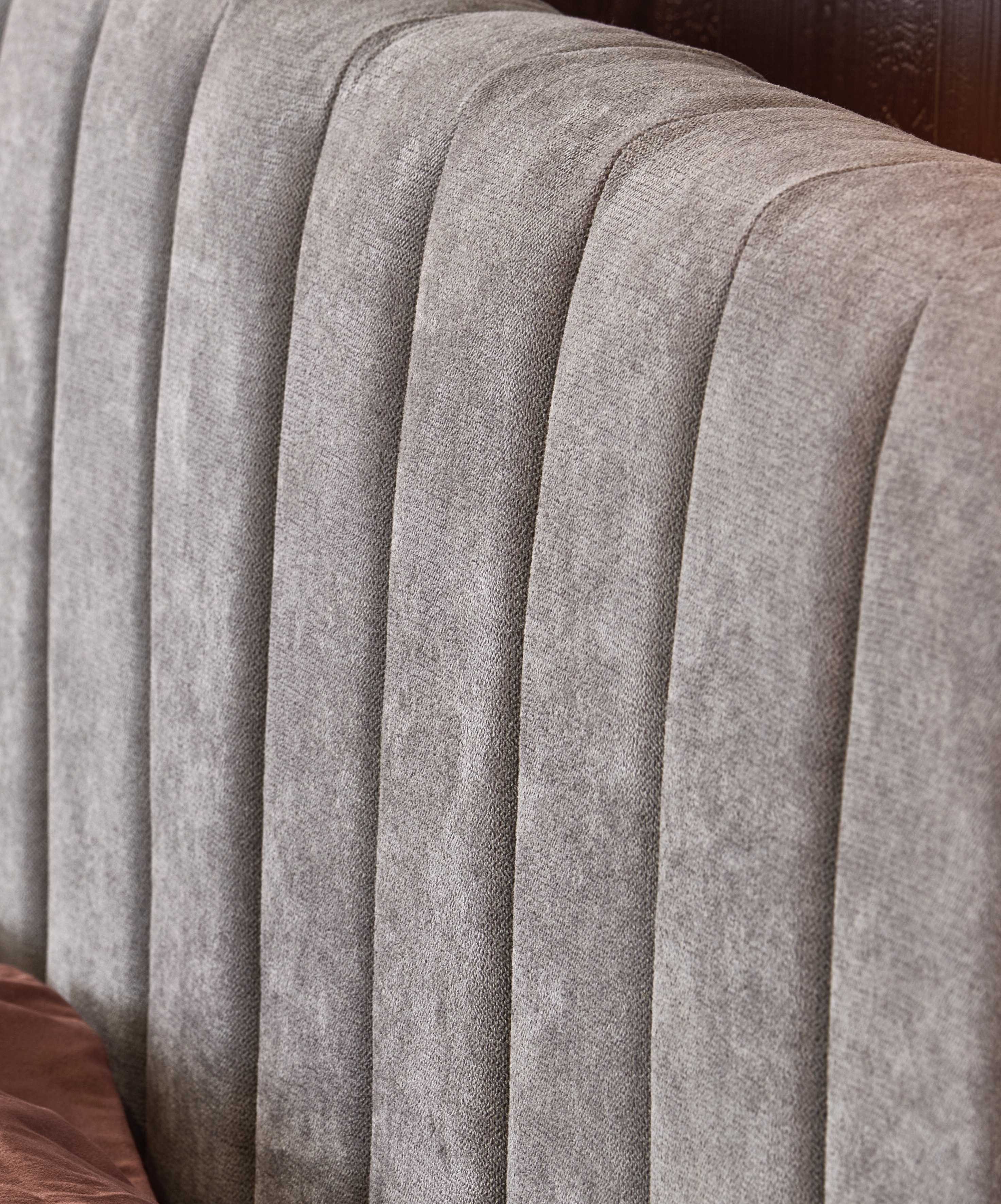Moderní postel FRANCESCA 160 je čalouněná šedou potahovou látkou hebkou na dotyk. Dokonale splyne s ostatním nábytkem v moderně zařízených interiérech, avšak svou nadčasovostí se hodí i do rustikálních designů ložnic.