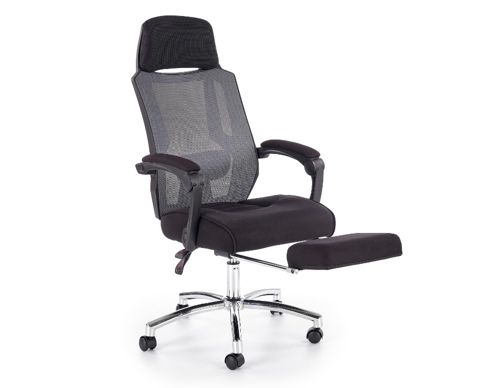 Elegantní kancelářské křeslo Freeman s nastavitelnou výškou a mechanismem TILT je vyrobené z eko kůže a síťoviny v dezénu černá / šedá. Kancelářské křeslo Freeman ocení milovníci moderního designu. Křeslo vyniká vysokým opěrákem a vysuvnou podnožkou, která poskytne zádům a nohám tu správnou oporu. Designovým prvkem jsou područky, které vynikají netradičním tavarem. Křeslo disponuje kolečky, které zajišťují plynulý a bezpečný pohyb při práci. Nosnost křesla do 120kg. Zboží dodáváme v demontu.