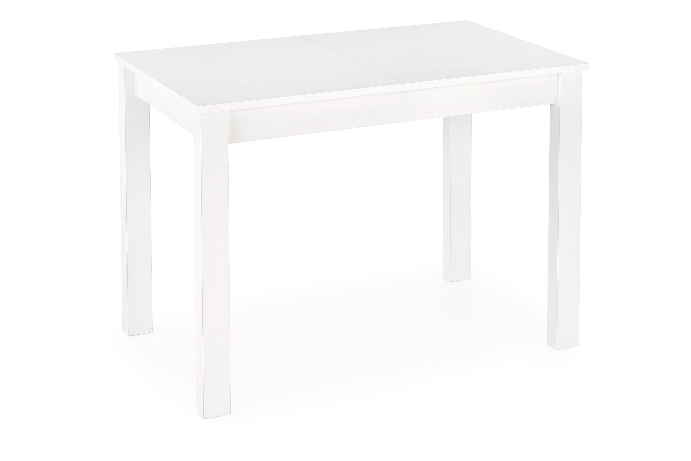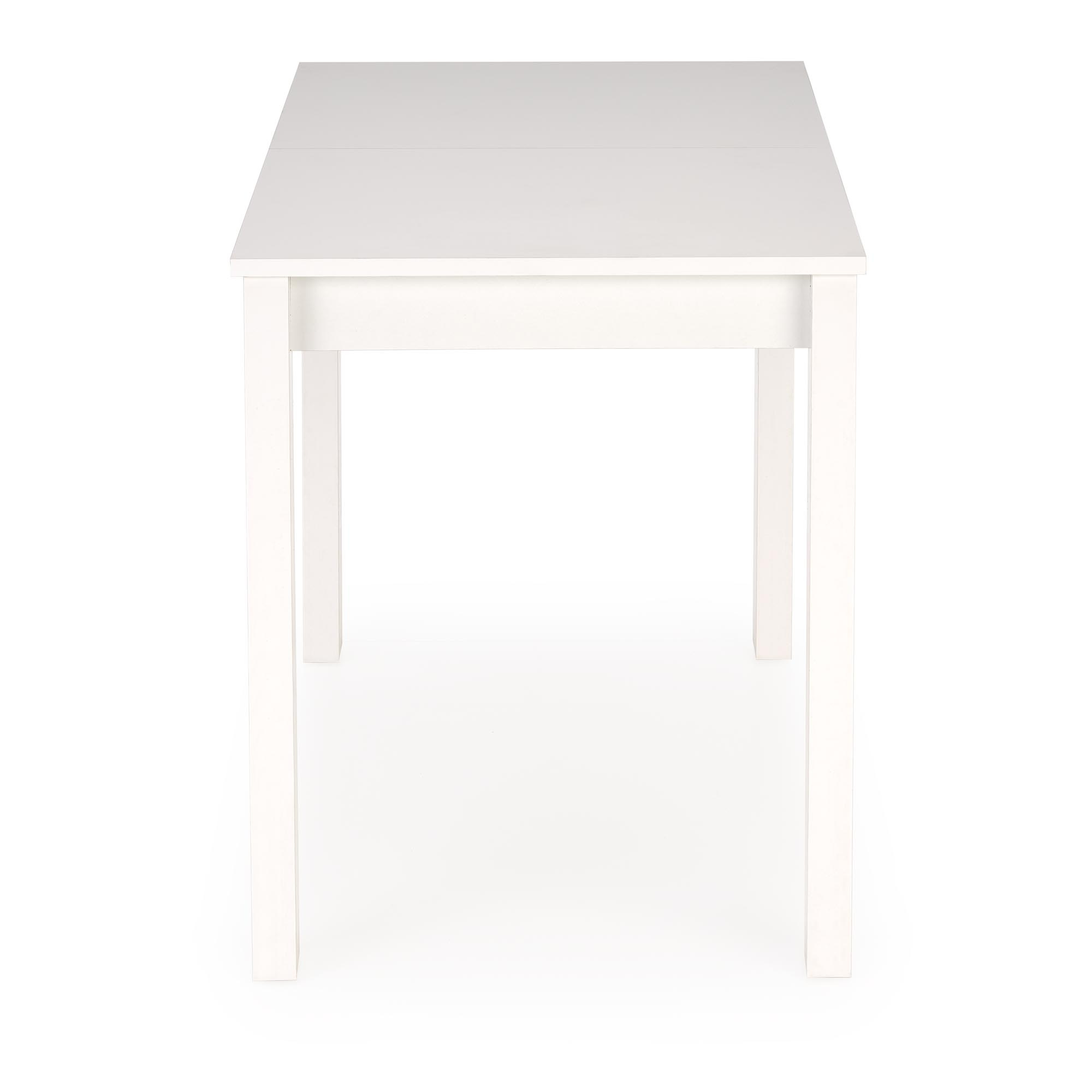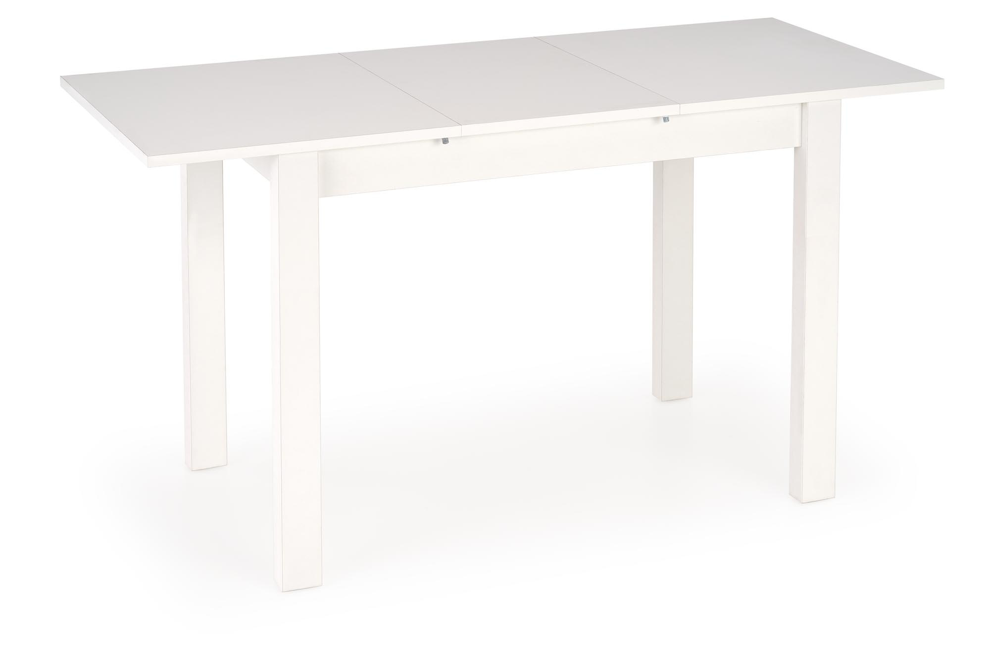 Moderní rozkládací jídelní stůl je vyrobený z laminované DTD v dezénu bílá. Stabilitu zajišťují čtyři pevné bílé nohy. Zboží dodáváme v demontu.