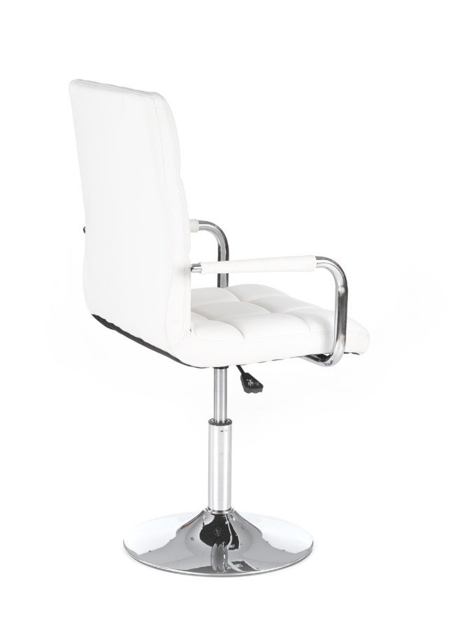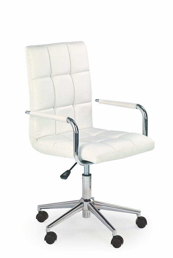 Dětská židle Gonzo je elegantní a praktická židle s mechanikou TILT z čalouněné eko kůže v dezénu bílá. Výšku židle můžete nastavit podle potřeb páčkou, která je umístěná pod sedákem. Židle má komfortní výhodu, která představuje područky, jejichž zásluhou si vaše dítě dopřeje ještě více pohodlí. Konstrukce židle je tvořená chromovaným kovem a její součást je tvořena základnou s pěti-ramenným křížem s kolečkami, která zajišťují snadnou mobilitu židle. Šroub nacházející se pod sedákem umožňuje houpání a blokaci v poloze vertikální. Maximální nosnost je 90kg. Zboží je dodáváno v demontu.