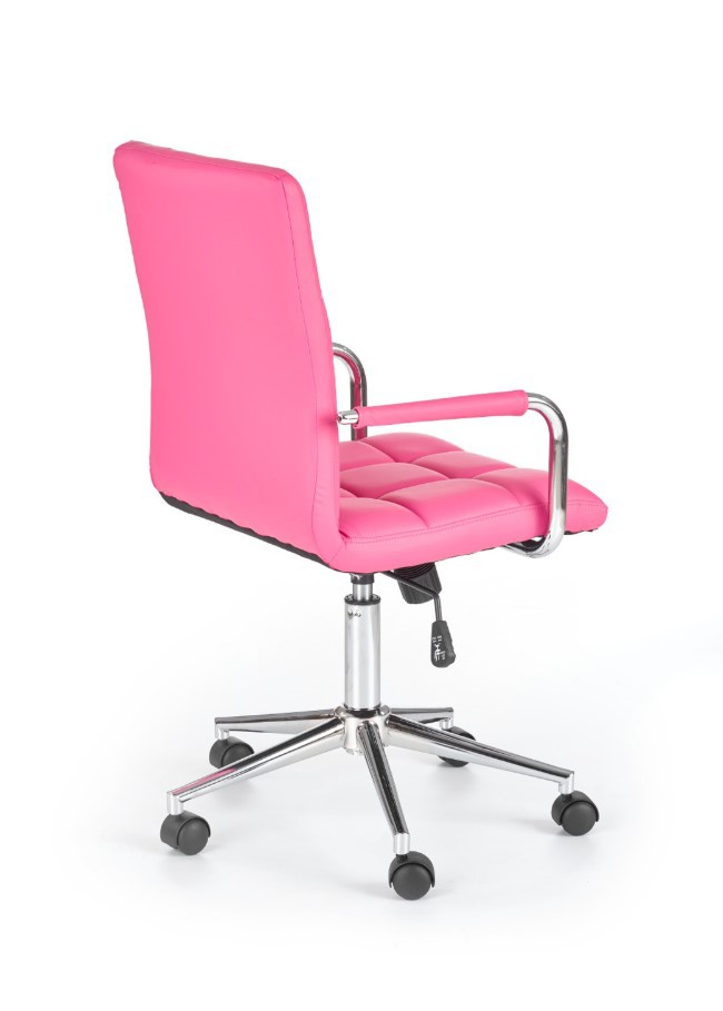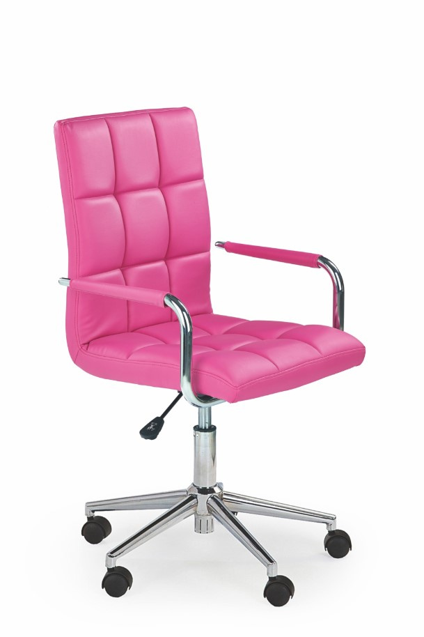Dětská židle Gonzo je elegantní a praktická židle s mechanikou TILT z čalouněné eko kůže v dezénu růžová. Výšku židle můžete nastavit podle potřeb páčkou, která je umístěná pod sedákem. Židle má komfortní výhodu, která představuje područky, jejichž zásluhou si vaše dítě dopřeje ještě více pohodlí. Konstrukce židle je tvořená chromovaným kovem a její součást je tvořena základnou s pěti-ramenným křížem s kolečkami, která zajišťují snadnou mobilitu židle. Šroub nacházející se pod sedákem umožňuje houpání a blokaci v poloze vertikální. Maximální nosnost je 90kg. Zboží je dodáváno v demontu.