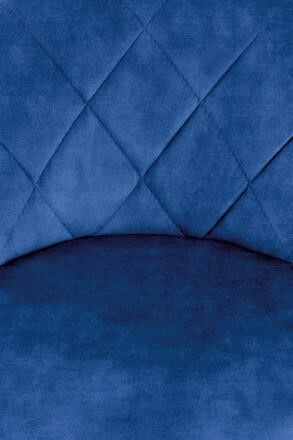 Nohy barové židle jsou vyrobeny z práškované oceli v černé barvě. Jejich součást tvoří pohodlná podnožka na oporu nohou. Sedák a opěrák jsou očalouněny tmavě modrým sametem. Maximální nosnost 120kg. Zboží dodáváme v demontu.