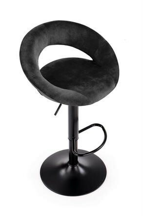 Barová židle je zhotovená z práškované ocele v černé barvě. Sedák a opěrák je čalouněn černou sametovou látkou. Židle je výškově nastavitelná a má praktickou podnožku na nohy. Maximální nosnost židle 120 kg. Zboží dodáváme v demontu.