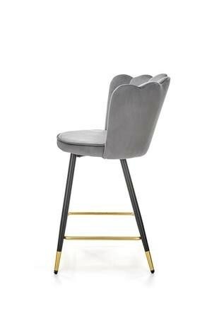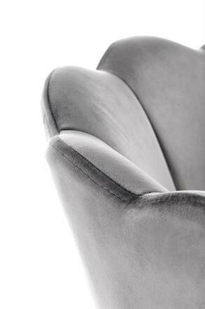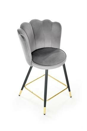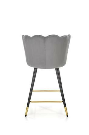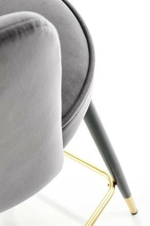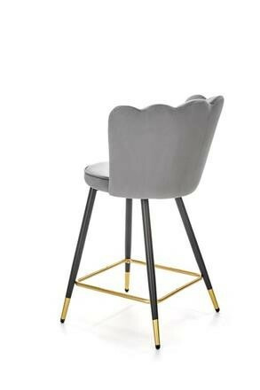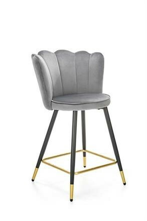 Barová židle je zhotovená z práškované ocele v černé barvě. Příčka na nohy a zakončení nohou ve zlaté barvě. Sedák a opěrák je čalouněn šedou sametovou látkou. Maximální nosnost židle 100 kg. Zboží dodáváme v demontu.