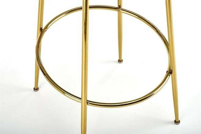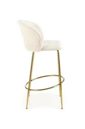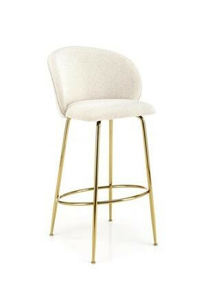 Barová židle je zhotovená z práškované oceli v zlaté barvě. Sedák a opěrák je čalouněn krémovou látkou. Židle má praktickou podnožku na nohy. Maximální nosnost židle 100 kg. Zboží dodáváme v demontu.