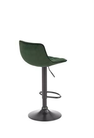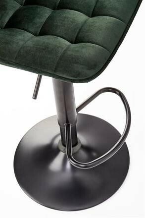 Barová židle je zhotovená z práškované ocele v černé barvě. Sedák a opěrák je čalouněn sametovou látkou v tmavě zelené barvě. Židle je výškově nastavitelná a má praktickou podnožku na nohy. Maximální nosnost židle 100 kg. Zboží dodáváme v demontu.