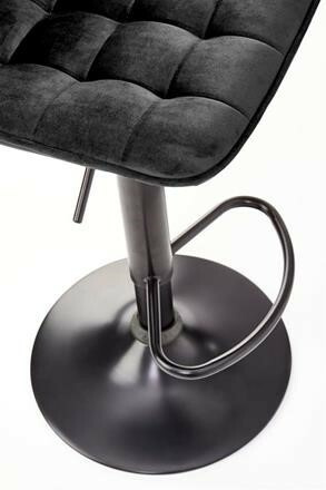 Barová židle je zhotovená z práškované ocele v černé barvě. Sedák a opěrák je čalouněn sametovou látkou v černé barvě. Židle je výškově nastavitelná a má praktickou podnožku na nohy. Maximální nosnost židle 100 kg. Zboží dodáváme v demontu.