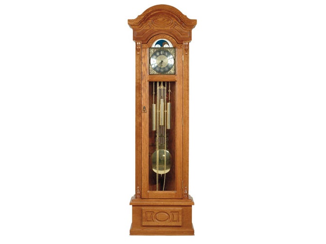 Stojací hodiny v rustikálním stylu. Čela jsou vyrobena z masívního dubového dřeva, korpusy z přírodní dubové dýhy. Mechanické hodiny německé firmy Hermle. U hodin lze vypnout hlasité odbíjení. Možnost výběru z několika odstínů moření dřeva. Vámi zvolenou variantu moření uveďte v objednávce.