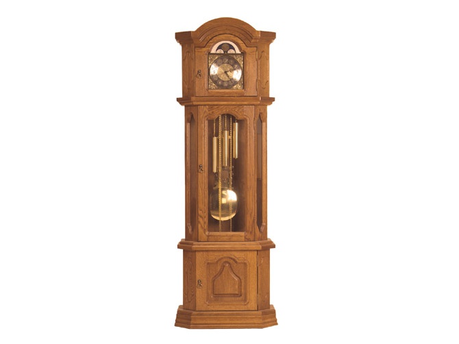 Stojací hodiny v rustikálním stylu. Nábytek má přední části zhotovené z dubového masívu, boky jsou z dřevotřískové přírodně dýhované desky, horní a spodní deska je vyrobená z lakované MDF, mořené, lakované v barevném provedení č. 3. Mechanické hodiny německé firmy Hermle. Celá kolekce má velmi kvalitní a originální zpracovaní, od úchytek až po řezbu ve dřevě. Možnost výběru z několika odstínů moření dřeva. Vámi zvolenou variantu moření uveďte v objednávce.