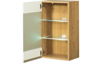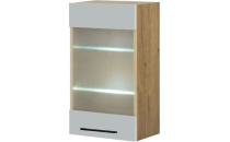 Horní skříňka je vyrobena z lamina v provedení korpus dub soma tmavý o tl. 16mm, dvířka MDF šedá. Ve skříňce je použito kování s tichým dojezdem. Cena včetně LED podsvícení polic.  Možnost otvírání dvířek pravé/ levé. Skříňky obsahují kompletní kování, úchytky a návod k sestavení. Zboží dodáváme v demontu.Skříňky obsahují kompletní kování, úchytky a návod k sestavení. Zboží dodáváme v demontu.