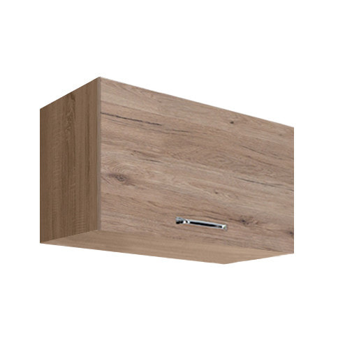 Jednodvéřová nízká horní skříňka je vyrobena z laminované dřevotřísky v barevném provedení: korpus dub sonoma, dvířka san remo/bílá PVC. Dovírání v zásuvkách i dveřích je s funkcí tichého dovírání. Zboží dodáváme v demontu.