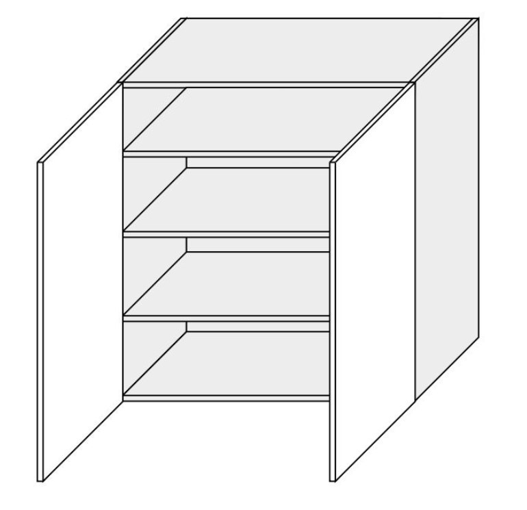 Korpus skříňky je vyroben z lamina nejvyšší kvality o tloušťce 18 mm dle výběru. Dvířka mají mírně zaoblené hrany a jsou vyrobeny z materiálu MDF a jsou oblepeny vysoce kvalitní fólií PVC v matné barvě dle výběru. ABS hrany 0,5mm. Z vnitřní strany jsou dvířka potaženy bílým laminátem. Zadní část skříňky je vyrobena z materiálu - sololit v  bílé barvě. Kovové úchytky typ relling. Horní skříňka je součástí kuchyně EMPORIUM která se dá sestavit dle vašeho přání. Zboží dodáváme v demontu.