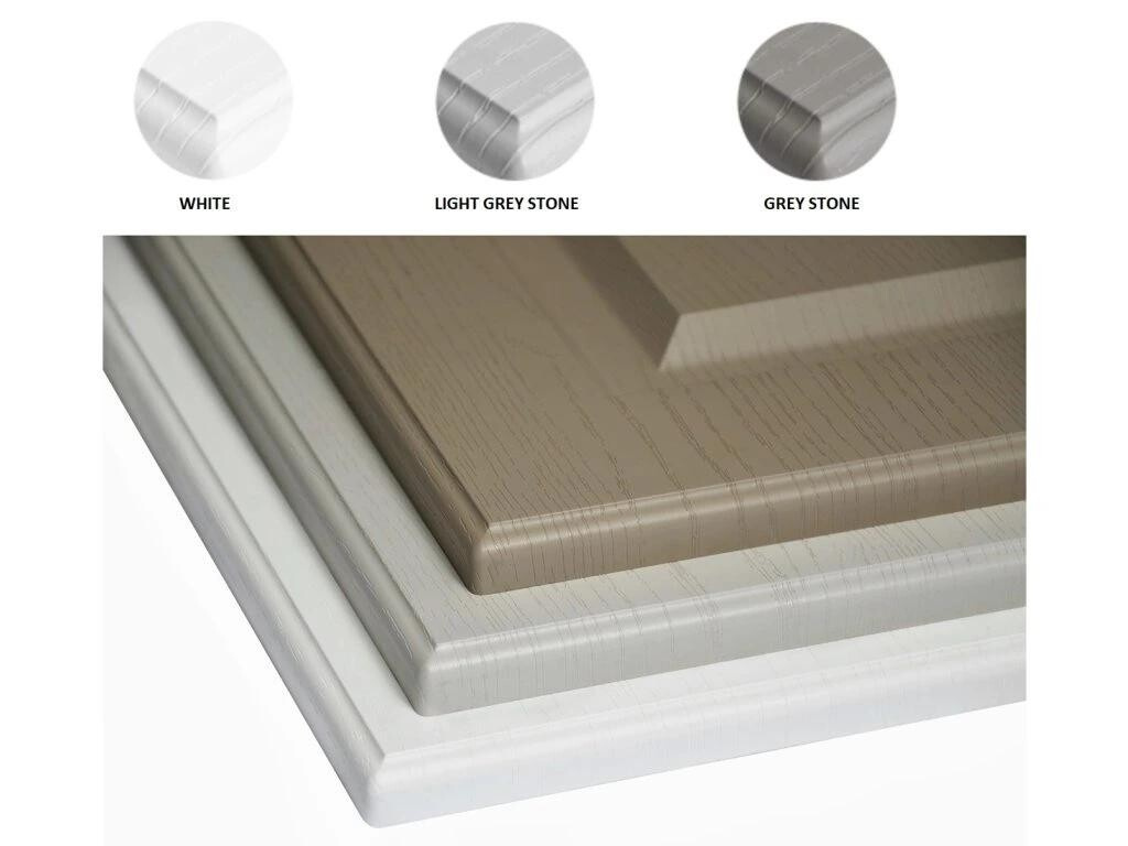 Korpus skříňky je vyroben z lamina nejvyšší kvality o tloušťce 18 mm dle výběru. Dvířka mají mírně zaoblené hrany a jsou vyrobeny z materiálu MDF a jsou oblepeny vysoce kvalitní fólií PVC v matné barvě dle výběru. ABS hrany 0,5mm. Z vnitřní strany jsou dvířka potaženy bílým laminátem. Zadní část skříňky je vyrobena z materiálu - sololit v  bílé barvě. Kovové úchytky typ relling. Horní skříňka je součástí kuchyně EMPORIUM která se dá sestavit dle vašeho přání. Sklo ve vitrínce je čiré. Zboží dodáváme v demontu.