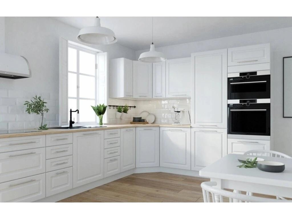 korpus WHITE - kvalitní závěsy GRASS HOPPER se systémem tichého dovíraní dvířek - tlumiče jsou integrovány v kování (tiché dovíraní se nevztahuje na rohové a zásuvkové skříňky - to lze přiobjednat)