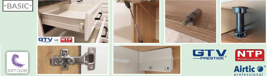 Korpus je vyroben z kvalitní laminátové dřevotřísky o síle 16 mm. Záda zpevňují HDF desky s omyvatelnou vnitřní stranou. Dvířka jsou z MDF desek o síle 16 mm. Dvířka skříněk jsou univerzální a lze je namontovat na levou i pravou stranu. Výšku spodních skříněk si můžete výškově regulovat díky štelovacím nožičkám. Cena nezahrnuje pracovní kuchyňskou desku a sokl. Kuchyni Glamour si můžete doplnit praktickými ostrůvky. Zboží dodáváme v demontu.