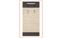 Horní skříňka digestořová Modena s výklopnými dvířky a mezistěnou je vyrobená z kvalitní dřevotřísky (16 mm) s ABS hranou 2 mm v barvě korpusu - rijeka světlá. Dezén dvířek lze vybrat z nabídky. Kovové pojezdy METALBOX v zásuvkách, regulovatelné ve třech úrovních. Tato skříňka je součástí kuchyně Modena, která se dá sestavit dle vašeho přání. Zboží dodáváme v demontu.