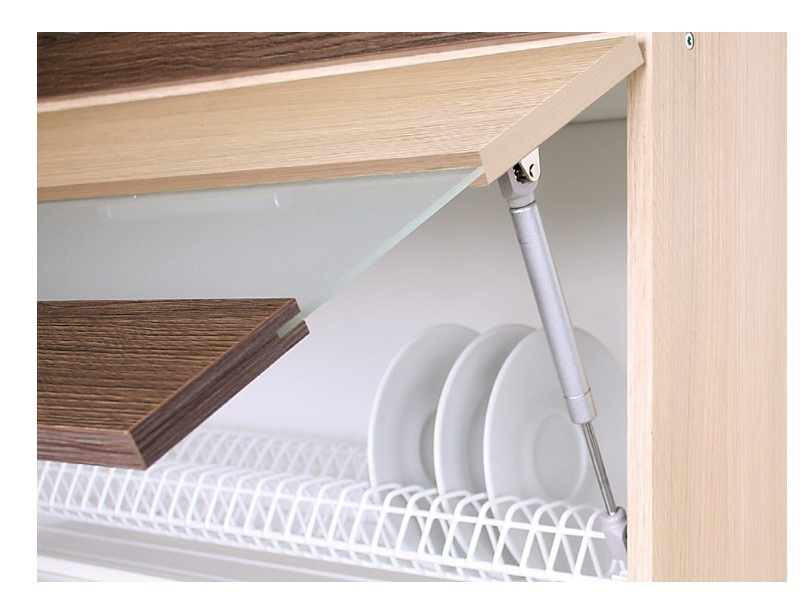 Horní skříňka Modena (vitrína-mléčné sklo) s výklopnými dvířky a mezistěnou je vyrobená z kvalitní dřevotřísky (16 mm) s ABS hranou 2 mm v barvě korpusu - rijeka světlá. Dezén dvířek lze vybrat z nabídky. Kovové pojezdy METALBOX v zásuvkách, regulovatelné ve třech úrovních. Tato skříňka je součástí kuchyně Modena, která se dá sestavit dle vašeho přání. Zboží dodáváme v demontu.