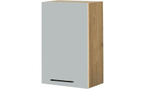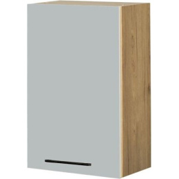 Horní skříňka je vyrobena z lamina v provedení korpus dub soma tmavý o tl. 16mm, dvířka MDF šedá. Ve skříňce je použito kování s tichým dojezdem. Možnost otvírání dvířek pravé/ levé. Skříňky obsahují kompletní kování, úchytky a návod k sestavení. Zboží dodáváme v demontu.