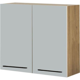 Horní skříňka je vyrobena z lamina v provedení korpus dub soma tmavý o tl. 16mm, dvířka MDF šedé. Ve skříňce je použito kování s tichým dojezdem. Skříňky obsahují kompletní kování, úchytky a návod k sestavení. Zboží dodáváme v demontu.