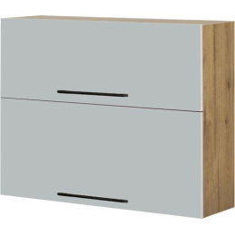Horní skříňka je vyrobena z lamina v provedení korpus dub soma tmavý o tl. 16mm, dvířka MDF šedé. Ve skříňce je použito kování s tichým dojezdem. Skříňky obsahují kompletní kování, úchytky a návod k sestavení. Zboží dodáváme v demontu.