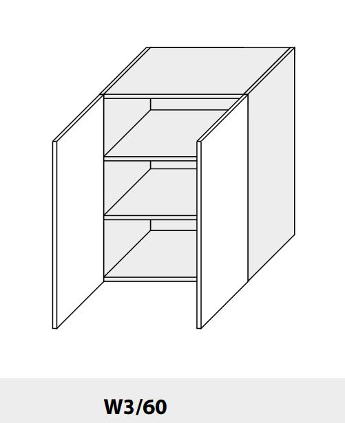 Korpus je vyroben z kvalitního lamina v tl.18 mm v dezénu dle výběru, odolné proti oděru a škrábancům. Dvířka mají zaoblené hrany a jsou vyhotoveny z MDF desky + PVC fólie ve vysokém lesku. Kovové úchyty typu Relling. Zboží dodáváme v demontu.