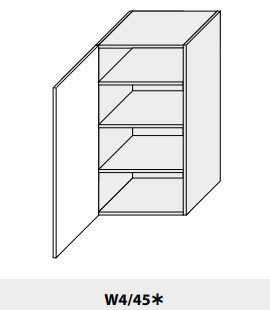 Korpus je vyroben z kvalitního lamina v tl.18 mm v dezénu dle výběru, odolné proti oděru a škrábancům. Dvířka mají zaoblené hrany a jsou vyhotoveny z MDF desky + PVC fólie ve vysokém lesku. Kovové úchyty typu Relling. Zboží dodáváme v demontu.