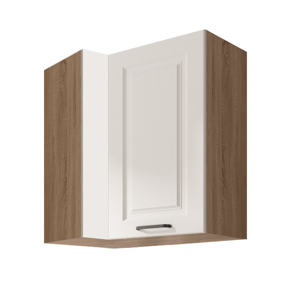 Rohová závěsná jednodveřová skříňka, s policí, s plnými dvířky je vyrobena z laminované dřevotřísky v barevném provedení korpus dub sonoma, dvířka bílá lesk. Skříně s tichým dovíráním v zásuvkách a dvířkách. Výhodou systému Smartje možnost libovolného sestavení skříněk a díky tomu můžete tvořit vybrané kompozice a přizpůsobit je vlastním interiérům. Zboží dodáváme v demontu.