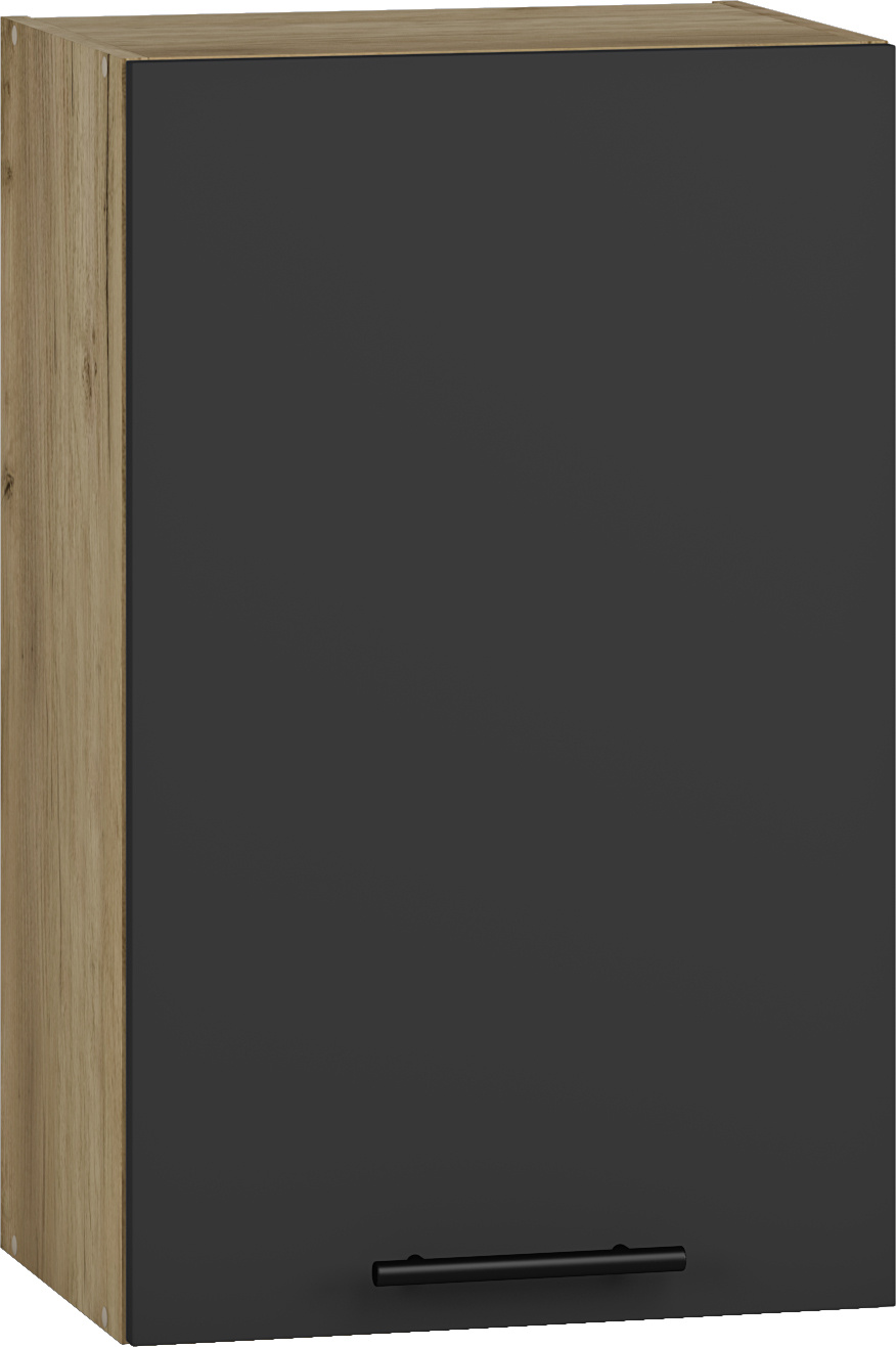 Korpus horní skříňka je z lamina v barvě dub craft, dvířka jsou z materiálu MDF v barvě antracyt lesk. Úchytka v barvě černé o délce 12,8 cm. Zboží je dodáváno v demontu.