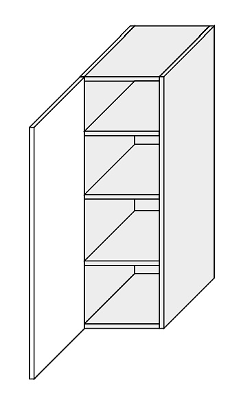 Korpus horní skříňky je vyroben z lamina nejvyšší kvality o tloušťce 18 mm v dezénu dle výběru. Možnost výběru provedení dvířek z dub vicenza nebo hikora přírodní. Zadní část skříňky je vyrobena z materiálu sololit v bílé barvě. Nosnost polic je max 15-25kg. Horní skříňka je součástí kuchyně Viano, která se dá sestavit dle vašeho přání. Zboží dodáváme v demontu.