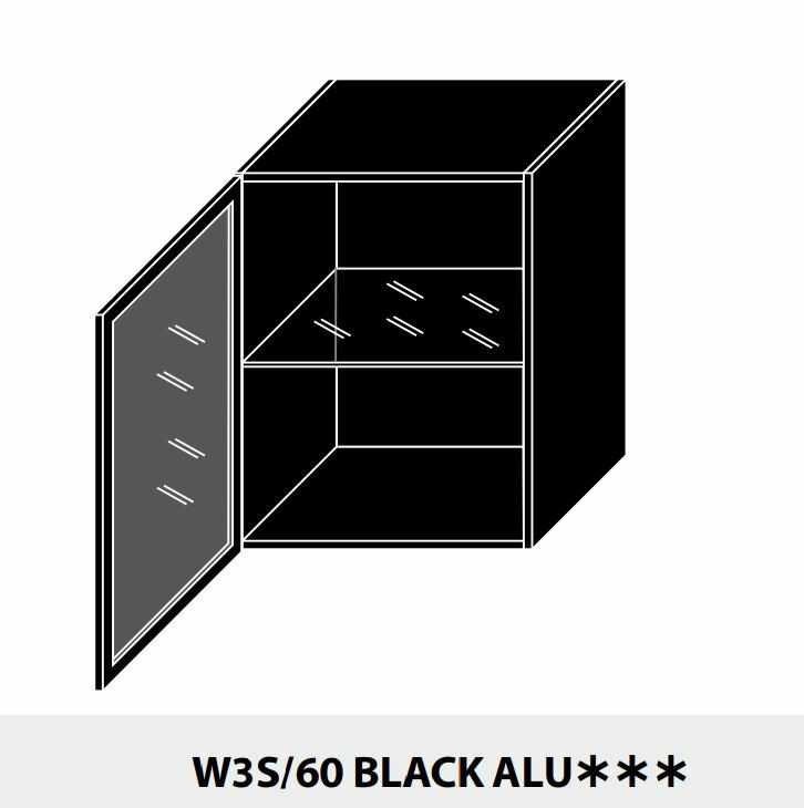 Horní skříňka Black ALU s černým korpusem 18 mm a dvířky ze skla. Horní skříňka je vhodná ke kuchyním Quantum, Emporium, Silver. Zboží dodáváme v demontu.