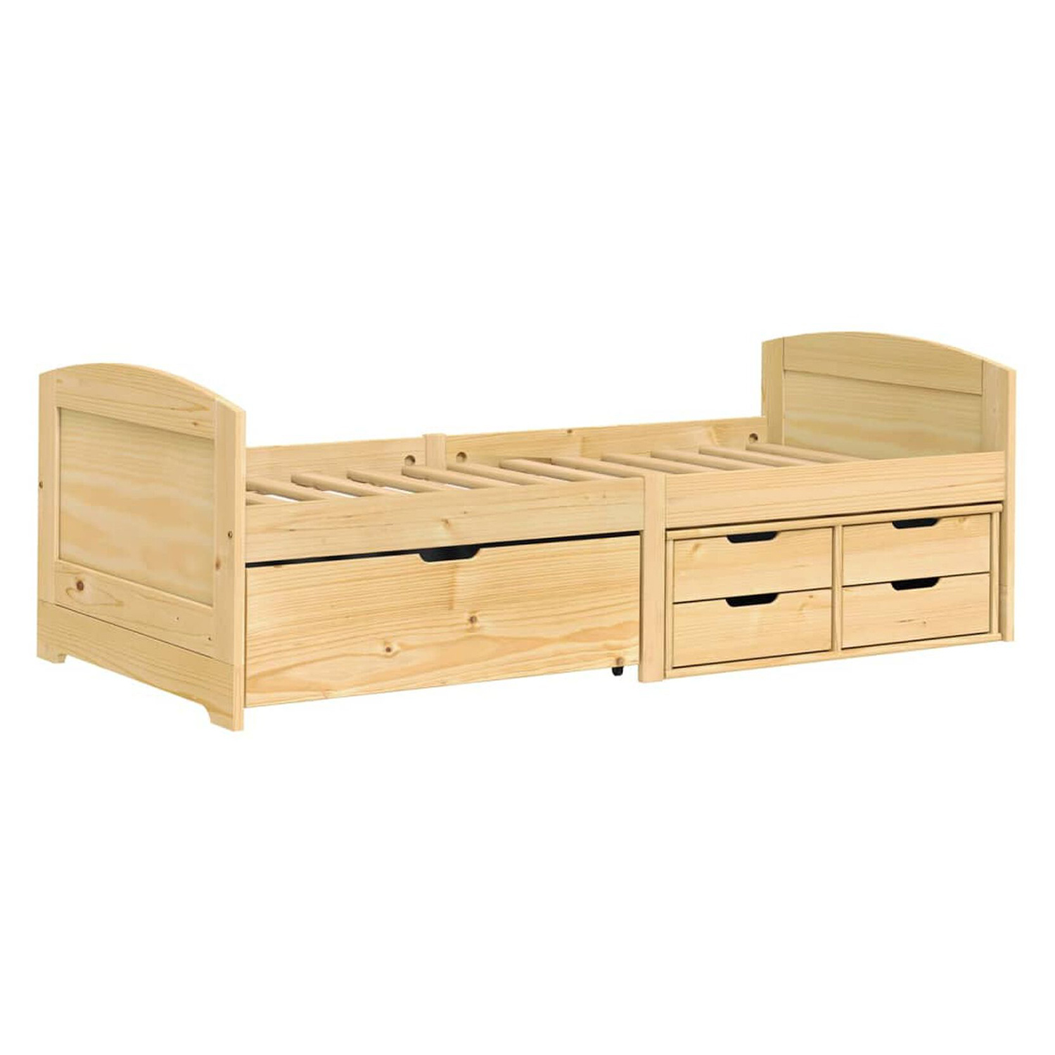 materiál masiv borovice, lakované provedení praktické úložné prostory pod postelí (zásuvky) v ceně cena včetně roštu (dřevěný laťkový), matrace není v ceně doporučený rozměr matrace 90 × 200 cm