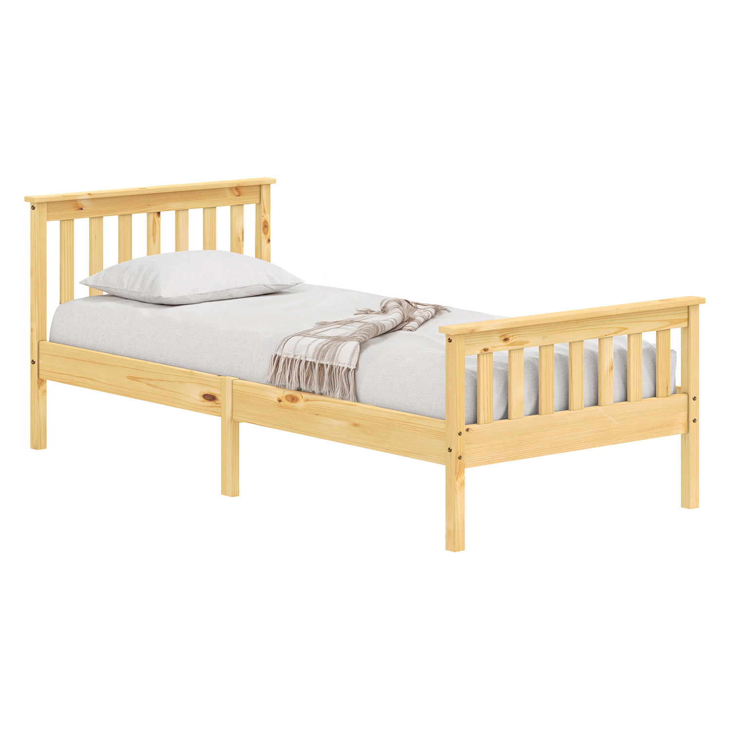 materiál masiv borovice, lakované provedení cena včetně roštu (dřevěný laťkový) bez matrace doporučený rozměr matrace 90 × 200 cm