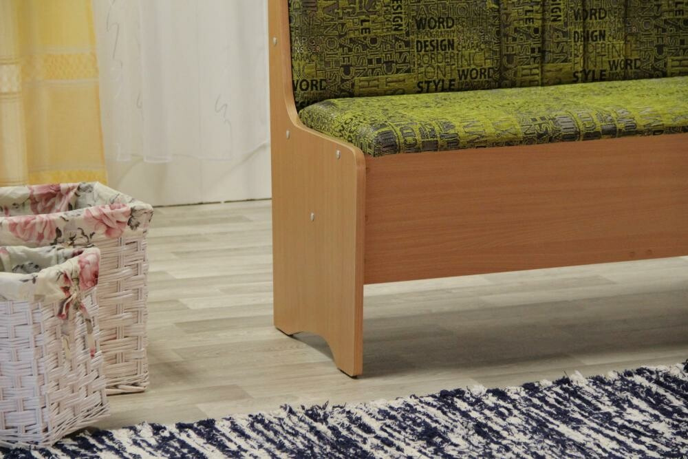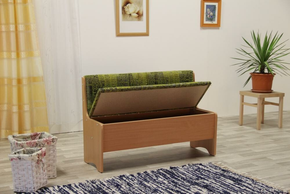 Kostra jídelní lavice je tvořena kombinací masivu a velkoplošných materiálů. Čalounění je tvořeno PUR pěnou.  Povrch úložného prostoru a nohy jsou vyrobeny z lamina.