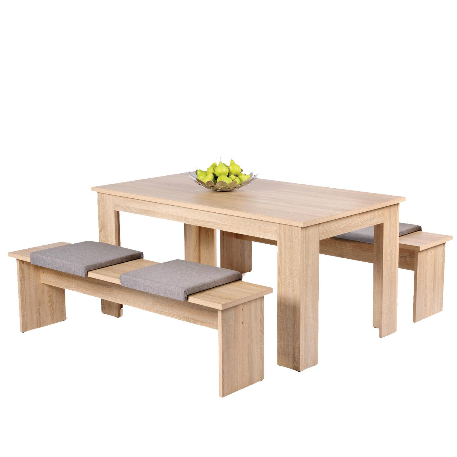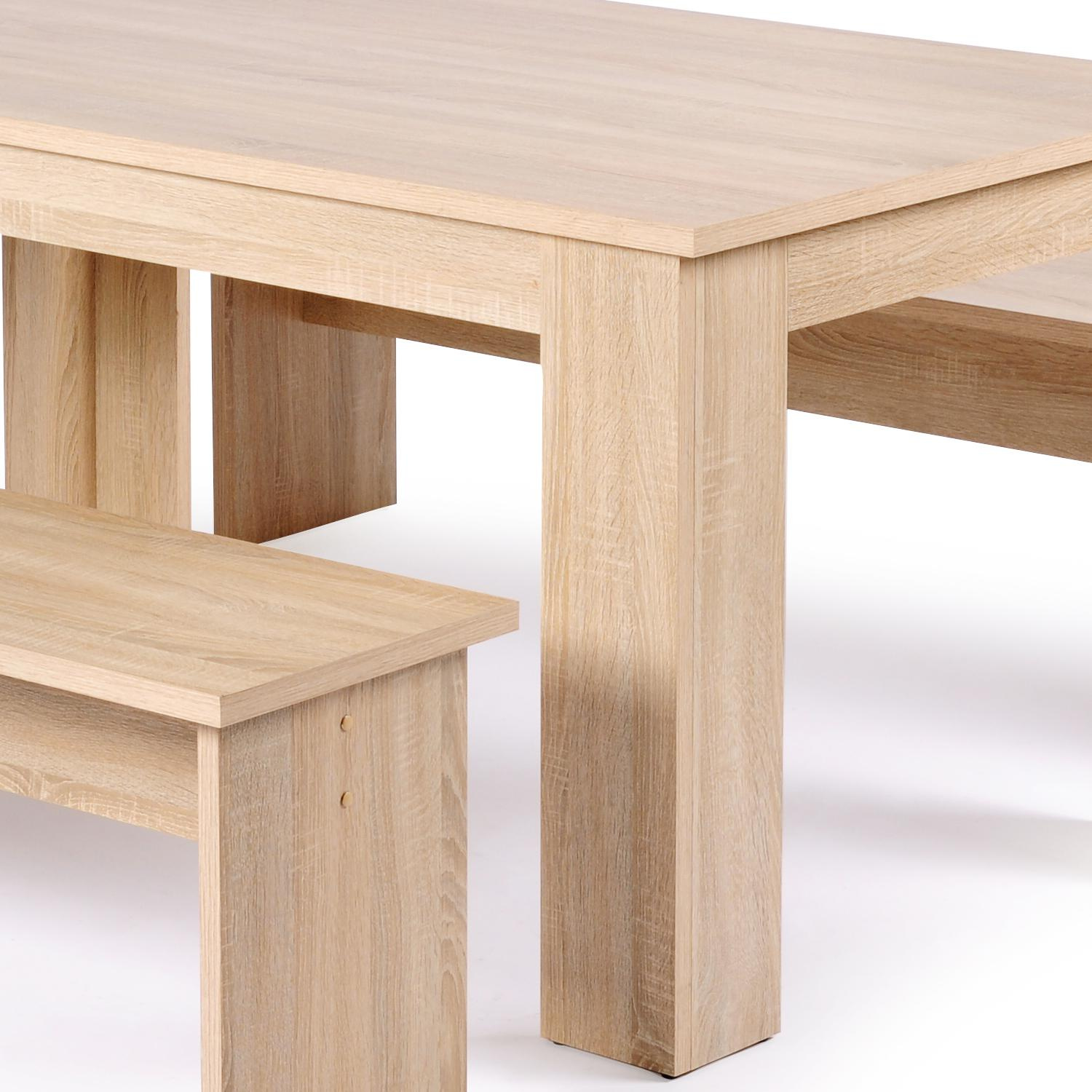 Pevný stůl a prostorné lavice jsou vyrobeny z dřevovláknité desky (MDF) v barevném provedení dub Sonoma. Robustní a přesto elegantní sestava vám nabídne dokonalý prostor ke společnému jídlu. Lavici lze navíc opatřit i praktickými podsedáky, které lze přiobjednat pod názvem Madagaskar. Jednoduchá sestava se stane ozdobou vaší jídelny. Každá lavice je určená pro 2 osoby doporučená nosnost jedné lavice je do 180kg. Zboží dodáváme v demontu.