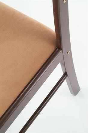Jídelní sestava je vyrobena z MDF dýhované stolová deska, konstrukce z masivu, sedáky z látky v barvě espresso. Sestava se skládá ze stolu a 4 židlí. Maximální nosnost stolu 30 kg. Maximální nosnost židle 100 kg. Zboží je dodáváno v demontu.