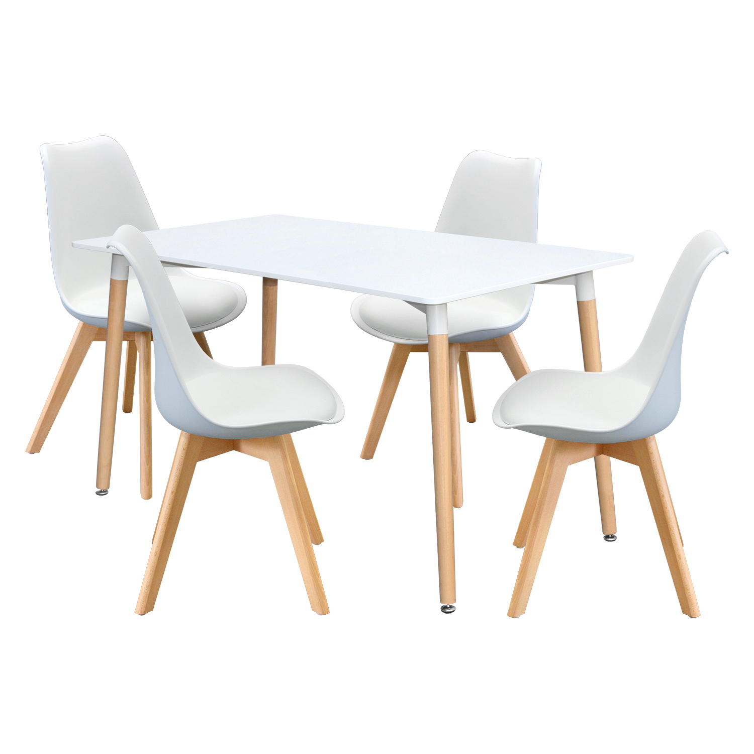 Jídelní sestava v barevném provedení bílá se skládá z jídelního stolu jídelní stůl 3152 a 4 ks jídelní židle QUATRO 3148. Jídelní stůl má desku z MDF, kulaté nohy z masivu a nastavitelné plastové kluzáky s pochromovanou krytkou. Jídlení židle má sedák - imitace kůže, nohy masiv. Zboží dodáváme v demontu.