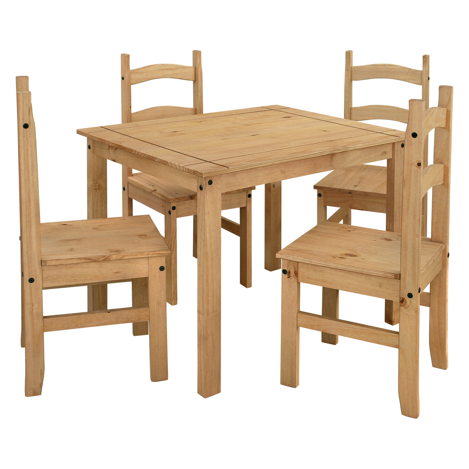Jídelní set z materiálu masiv borovice voskovaná v medovém odstínu. Set se skládá ze stolu a 4 ks židlí. Zboží dodáváme v demontu.