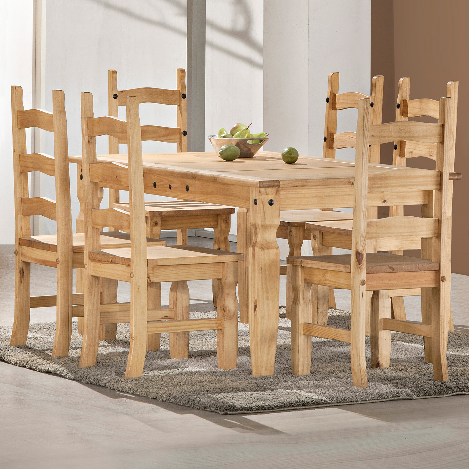 Jídelní set Corona se skládá ze stolu a 6 židlí, je vyrobena z masivního voskovaného dřeva borovice v medovém odstínu. Prostorná deska stolu a pevné židle - to je velká devíza tohoto setu. Zútulněte si svůj domov a pořiďte si tento stylový kousek nábytku. Zboží dodáváme v demontu.