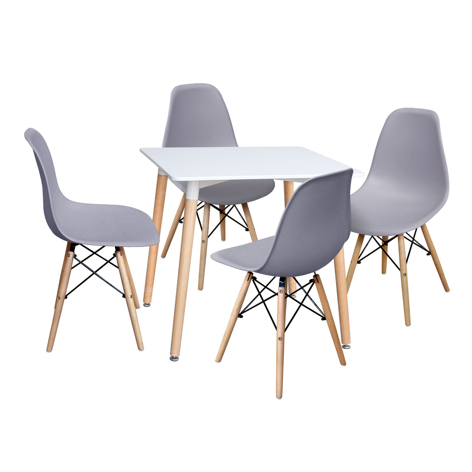 Jídelní stůl 80x80 UNO bílá + 4 židle UNO šedá
