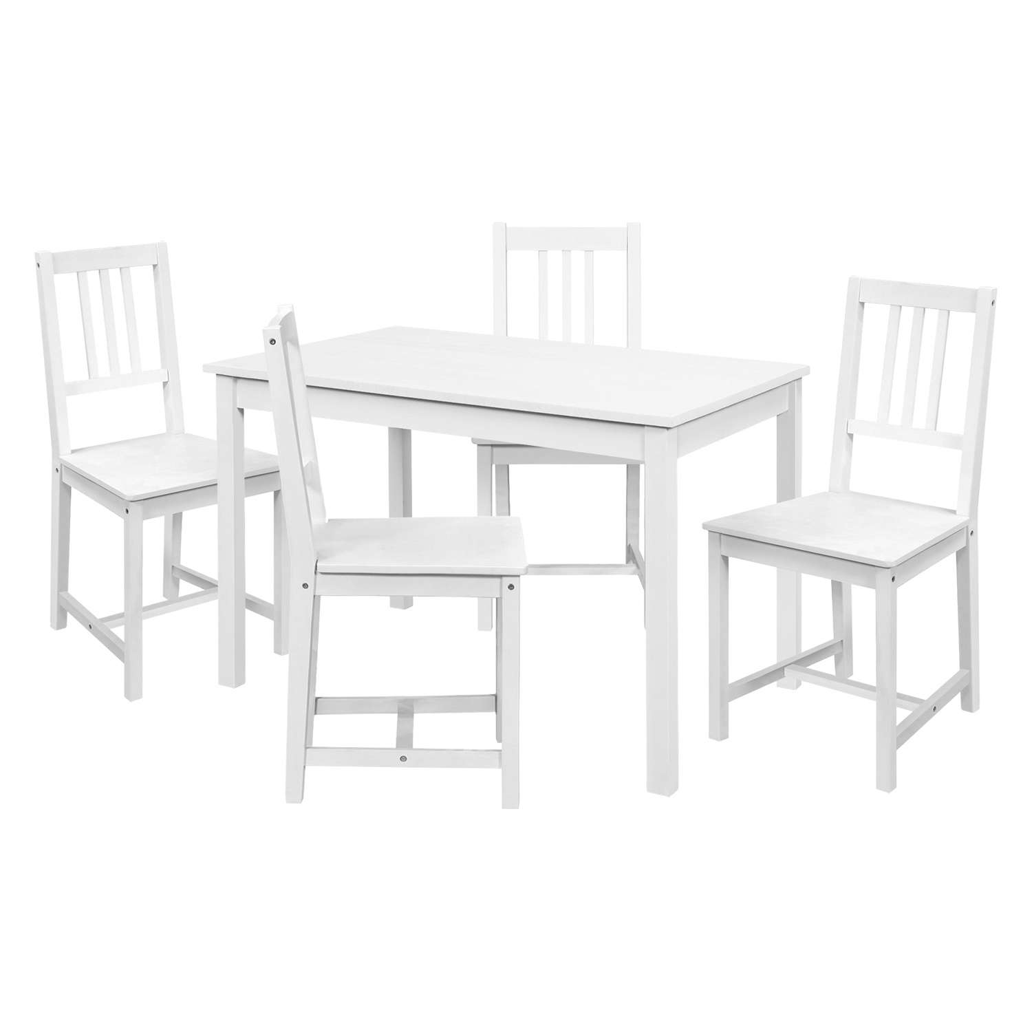 Jídelní set je vyroben z materiálu masiv borovice v barevném provedení bílá lak. Sestava se skládá : jídelní stůl 8848B a 4 jídelní židle 869B. Zboží dodáváme v demontu.