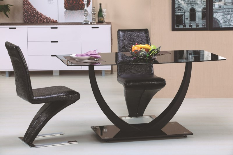 Moderní luxusní jídelní stůl Anton vyrobený v kombinaci skla a lakované oceli ozdobí každý jídelní prostor. Horní deska a podstava stolu jsou z černého skla, kostra je z lakované oceli v barvě černá. Jídelní stůl Anton není rozkládací. Zboží je dodáváno v demontu.